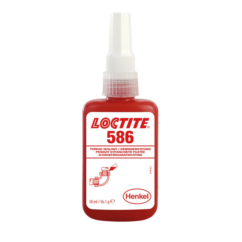 LOCTITE 586 vytvrdzuje bez prístupu vzduchu v škáre medzi lepenými kovovými povrchmi. LOCTITE 586 sa používa ako závitové tesnenie proti vode, oleju a väčšine bežných organických materiálov.
