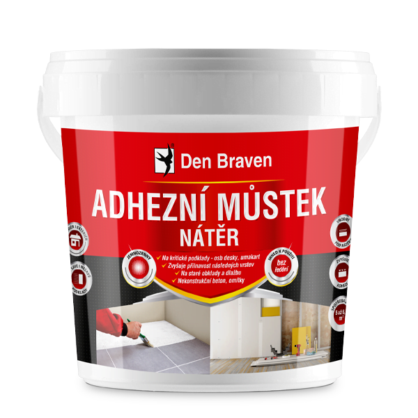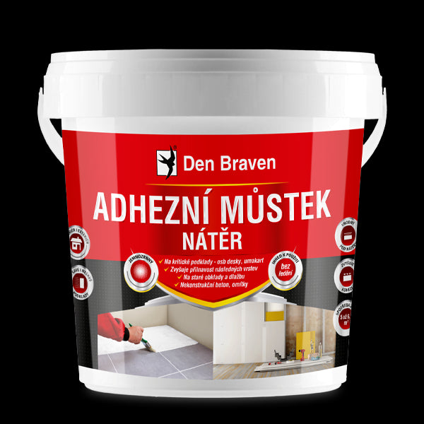 Adhezní můstek je jednosložkový bez rozpouštědlový bílý nátěr, který je možno použít v interiérech i exteriérech na vyzrálé omítky, nekonstrukční a pohledový beton, skleněné tapety, dřevěné, papírové, sádrokartonové povrchy na dřevotřísku, na OSB desky, umakart, obklady a dlažby apod.