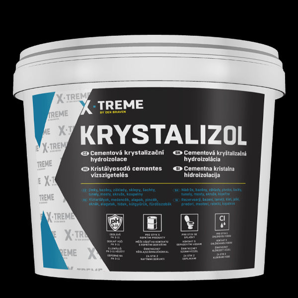 Je vodotěsný systém, který zamezuje pronikání vody do betonu nebo jiných cementových podkladů vystavených stálému působení tlaku vody. Zaručuje zvýšení nepropustnosti betonů a malt proti vodě, kyselinám a ropným produktům, zabraňuje korozi betonu a současně tvoří na povrchu vodotěsnou vrstvu. Na ošetřený povrch krystalizolem lze nanášet jakékoliv nátěry a omítky.