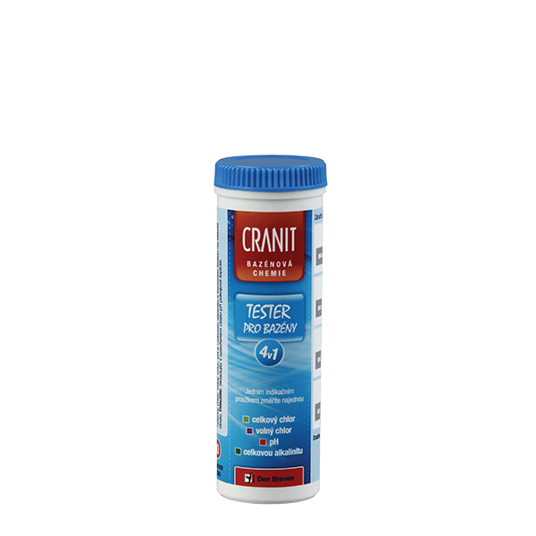 Cranit Tester pro bazény 4v1 10 ks testovacích proužků tuba v blistru namodralá