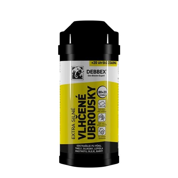 Extra silné čisticí a vlhčené ubrousky pro efektivní odstranění nevytvrzené PUR pěny, silikonů, tmelů, většiny lepidel, olejů, mazadel, laků a barev z rukou, pracovních nástrojů nebo potřísněných povrchů. Odstraňuje také zaschlé nátěry z nesavých povrchů, max. do 24 hodin po aplikaci.