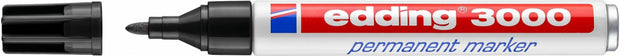 Permanentní popisovač Edding 3000, odolný proti rozmazání a opotřebení, funguje téměř na všechny povrchy. Hodí se do každé domácnosti pro označování téměř všech materiálů, např. karton, plast, sklo, kov, dřevo, kůže.