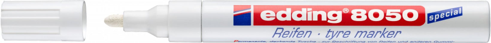 Edding 8050 rychle zasychá, je voděodolný a vysoce neprůhledný. Skvěle píše na všechny gumové materiály. Odolný proti opotřebení a extrémně odolný vůči světlu. Pro dobrou viditelnost na tmavém povrchu je tento fix vyráběn v bílé barvě.