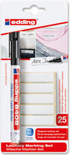 Permanentní popisovač pro jemné a tenké psaní Vám pomůže popsat oblečení do školky, školy nebo na sport. Je prodáván v sadě spolu s 25 etiketami, které jsou určené pro nažehlení na textil. Podívejte se na video k použití této soupravy.