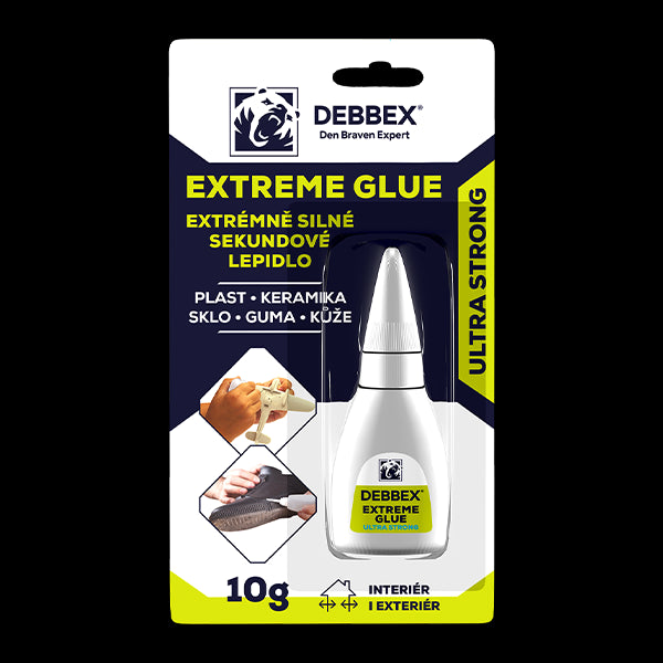 Extrémně silné sekundové lepidlo EXTREME GLUE na okamžité lepení plastů, keramiky, skla, gumy nebo kůže. Toto lepidlo drží do několika sekund bez nutnosti odvětrávání.