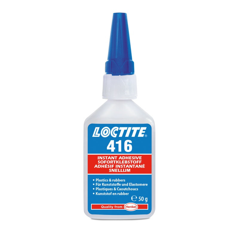 Univerzální vteřinové lepidlo Loctite 416 střední viskozity, které je určeno k lepení většiny materiálů. Velmi dobře lepí především ocel, hliník, ale také PVC. Vytvrzuje ve spáře během několika sekund.