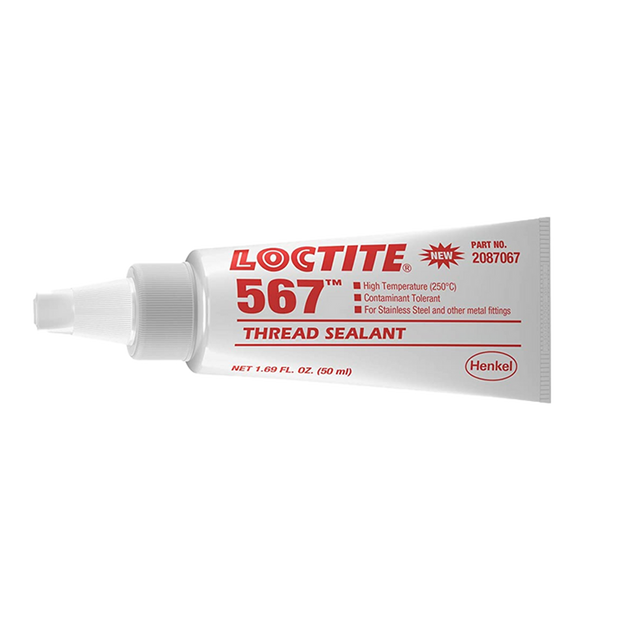 Loctite 567 je speciální vysokoviskózní akrylátové těsnění na kuželové (kónické) závity kovových trubek a tvarovek (např. z nerezové oceli, hliníku) až do rozměru závitu M80. Tento produkt je hladká našedlá pasta s nízkou pevností, která vytvrzuje bez přístupu vzduchu ve spáře, odolává vibracím a rázům a zabraňuje uvolnění či prosakování spoje.