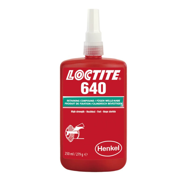 Loctite 640 je upevňovač, který slouží především pro spojení lícovaných válcových součástí. Určen je ale spíše pro déle trvající upevnění, ať u z důvodu velikosti upevňovaných součástek, tak například složitosti konstrukce. Právě proto má Loctite 640 prodlouženou vytvrzovací dobu. Upevňovač vytvrzuje ve spáře mezi dvěma kovovými povrchy bez přístupu vzduchu. Po aplikaci a vytvrzení zabezpečuje konstrukci proti nechtěnému uvolnění. Loctite 640 je navíc vysoce odolný upevňovač proti vibracím a rázům. Mezi typické použití Loctite 640 patří upevnění klínů a per, lícovaných válcových součástí, ložisek, objímek, pouzder a podobně.