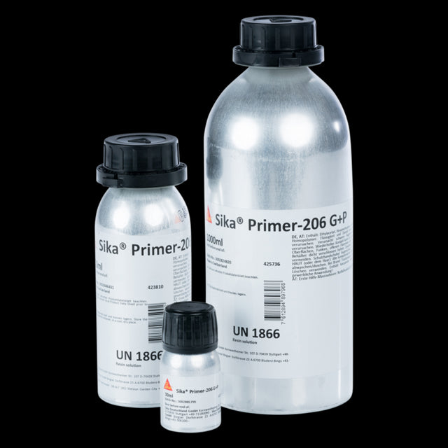 Sika Primer-206 G + P je černý, vlhkost vytvrzující tekutý základní nátěr speciálně vyvinutý pro ošetření lepených ploch při přímém zasklení před aplikací lepidel Sika pro přímý zasklení polyuretanem. Tekutý základní nátěr pro použití na širokou škálu skleněných povrchů. Zlepšuje přilnavost ke skleněným a keramickým povrchům.