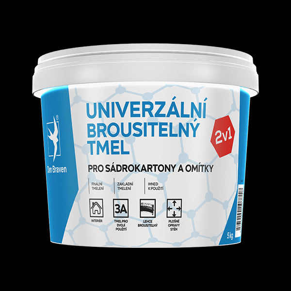 Jde o vysoce jakostní tmel pastového provedení určený k tmelení spár sádrokartonových desek pro bandážování a finální vrstvy, pro použití se skelnou bandáží nebo samolepicí mřížkou. Je vhodný také k celoplošnému vyrovnávání nerovných omítkových podkladů před finální povrchovou vrstvou. Tmel je lehce brousitelný. Má prodlouženou dobou tuhnutí. Označení dle EN 13963 – 3A – Tmel pro dvojí použití. Brousitelný tmel je vhodný také na opravy omítek, zdiva a betonu, včetně pórobetonových tvárnic jako YTONG, HEBEL, spár sádrokartonových konstrukcí apod. Tmel pro bandážování i finální vrstvy.