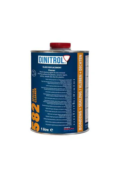 DINITROL 582 je transparentný, rýchloschnúci čistič na silne znečistené povrchy (sklo, keramický sieťotlač, farby, kovy, plasty).