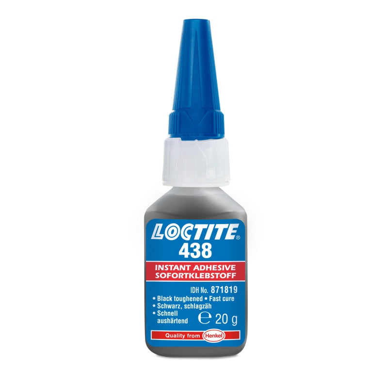 LOCTITE 438 je gumou plnený, húževnatý produkt so zvýšenou pružnosťou a odolnosťou proti lúpaniu a súčasne zvýšenou odolnosťou proti rázom. Produkt poskytuje rýchle lepenie na širokom spektre materiálov, vrátane kovov, plastov aelestomerů, rovnako tak i na pórovitých a savých materiáloch, ako je drevo, papier, koža a tkaniny.