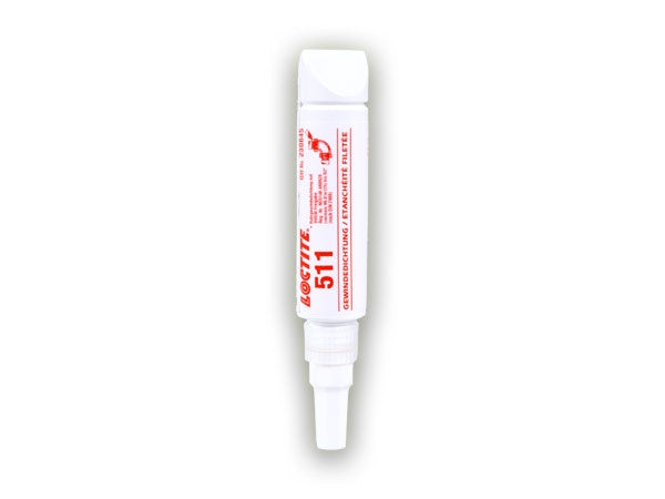 Loctite 511 je biela, tixotropná pasta, ktorá sa odporúča použiť pre kovové a predovšetkým mosadzné materiály. Na všetky skrutky, ktoré sa povoľujú prí servisných opravách, retifikační skrutky. Typ tesnenia - vytvorené na mieste.