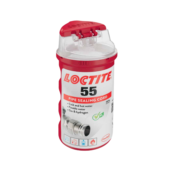 Loctite 55 tesniaca niť 160 m na všeobecné použitie, ktorá sa vo forme šnúry navíja priamo z obalu na závit trubky. Dodáva sa v pohotových obaloch, v ktorých sa skladuje a z ktorých je priamo aplikovaná.