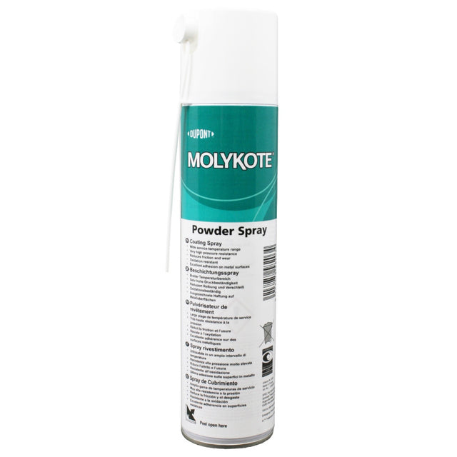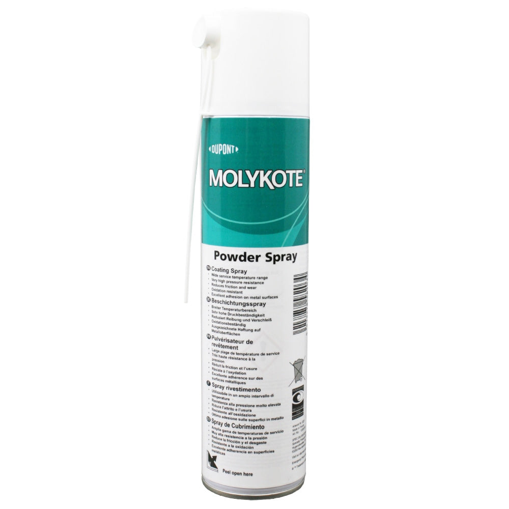 - Použitie: Nanášanie na kovové plochy trecieho styku, ktoré nemožno vďaka vysokému zaťaženiu, pomalým rýchlostiam či nepriaznivému vplyvu prostredia dostatočne mazať olejom alebo mazacím tukom. Práškové mazivo Powder Spray je uprednostňovaný produkt, ktorý vznikol z produktu Molykote Microsize preto, aby sa dal ľahko nanášať na ťažko dostupné trecie plochy.
