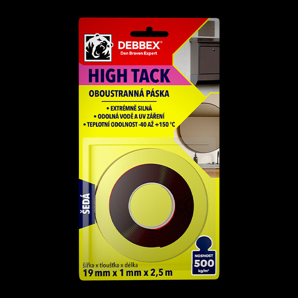 Obojstranná penová páska HIGH TACK s extra hrubou akrylátovou lepiacou vrstvou. Priľne k širokej škále podkladov, a to veľmi silno. Má veľkú výhodu v okamžitej plnej prídržnosti, tým urýchľuje montáž a uvedenie lepeného predmetu do prevádzky.