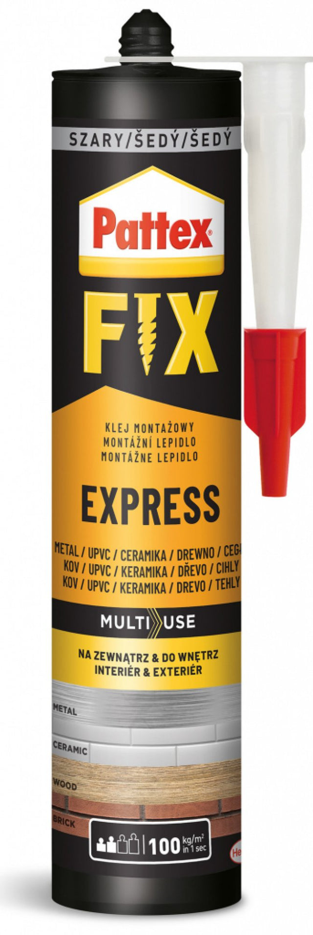 Pattex Express Fix PL600 je vhodný na lepenie v interiéri aj exteriéri, kde je vyžadovaná vysoká pevnosť spoja. Vhodné pre savé aj nesavé materiály. Pattex FIX Express má už po 1s vysokú počiatočnú priľnavosť.