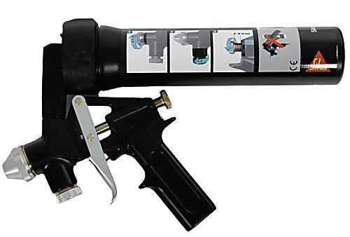 Sika SprayGun je pneumatická striekacia pištoľ na nanášanie tmelov - polyuretán, ms polymér, hybrid. Určené pre nástrekové hmoty SikaFlex 529AT. Je navrhnuté na použitie ako nástrekové flexibilné tesnenie pre preplátované spoje, opravy kolízií a karosárske aplikácie.