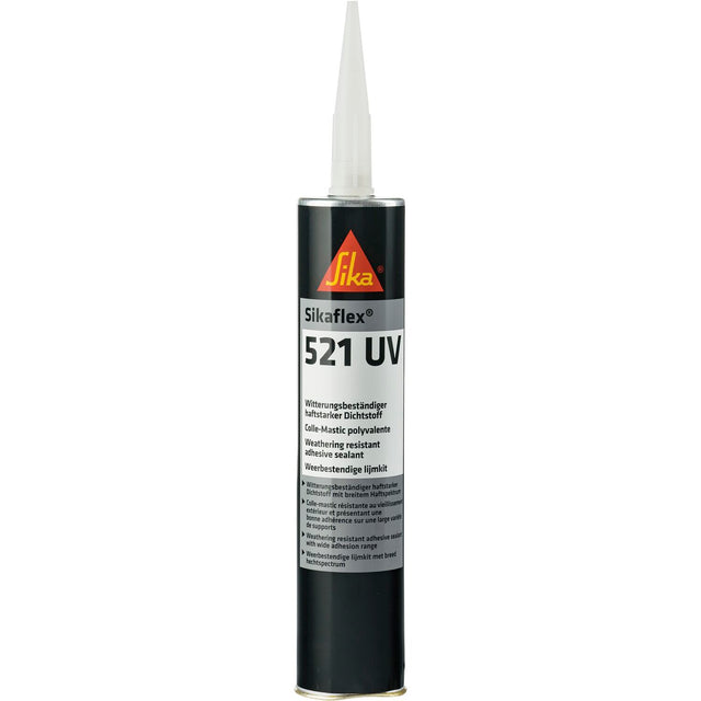 Sikaflex 521 UV je 1-komponentné STP lepidlo/ tmel odolné voči poveternostným vplyvom, ktorý vykazuje dobrú adhéziu k širokej škále povrchov, ako sú kovy, ABS, PC, FRP a drevo, obvykle bez potreby zvláštnej prípravy povrchu. Tento viacúčelový produkt je vhodný pre vnútorné aj vonkajšie aplikácie.