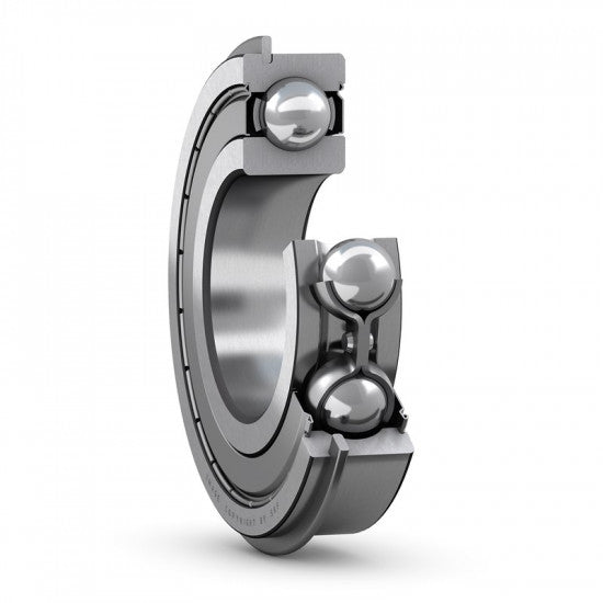 SKF Explorer 6002-2ZNR - nerozoberateľné jednoriadkové radiálne valčekové ložisko s oceľovou kĺzkou vedenou valčekmi s obojstranným bezkontaktným plechovým tesnením, normálnou radiálnou vôľou a s drážkou pre poistný krúžok. Ložisko je dodávané s poistným krúžkom SP 35. Krycí plech prilieha k hladkému vnútornému krúžku. Ložisko je určené na uloženie s rotujúcim vnútorným krúžkom a je naplnené kvalitným mazivom s teplotným rozsahom od -40°C do +100°C pre celú dobu životnosti ložiska. Ak sa otáča vonkajší krúžok, môže dôjsť pri vyšších otáčkach k úniku maziva. Ložiská SKF triedy Explorer predstavujú novú triedu výkonných valivých ložísk, ponúkajú podstatné zvýšenie hlavných prevádzkových parametrov, ako sú hluk, vibrácie, tepelné vyžarovanie, prevádzková spoľahlivosť, dynamická únosnosť a sú vyrábané s vyššou presnosťou ako bežné. Presnosť rozmerov zodpovedá triede presnosti P6.