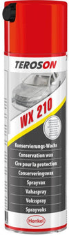 TEROSON WX 210 je antikorózny vosk na konzerváciu karosérií vozidiel a korózií ohrozených miest v motorovom priestore. Sprej je ideálny na malé alebo bodové opravy. Je bez asfaltu a zlučiteľný s PVC. Produkt má dobrú schopnosť prenikania, dobre preniká do chránených priestorov, neodkvapkáva a je vhodný na dlhodobú ochranu.